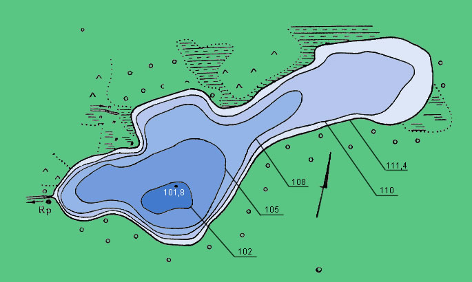 Batimetrinis/giluminis Vidugašlio ežero planas. Lazdijų rajonas.